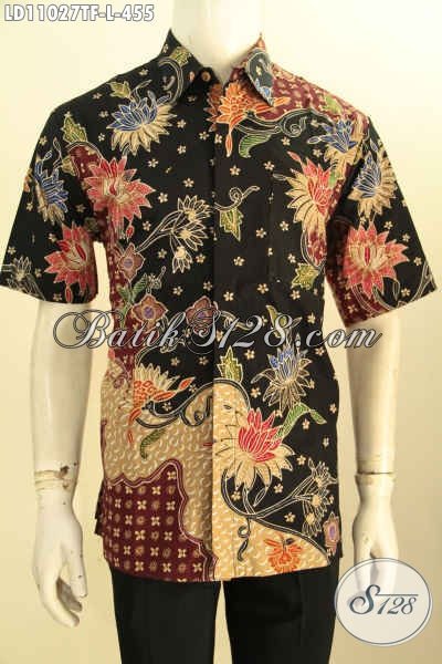 Baju Batik Atasan Pria Motif Bunga, Kemeja Batik Berkelas Warna Elegan Nan Mewah Proses Tulis Daleman Full Furing, Pas Banget Untuk Seragam Kerja Tampil Mempesona [LD11027TF-L]