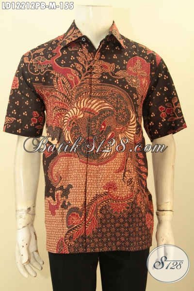 Baju Batik Atasan Pria Muda Model Lengan Pendek, Hem Batik Solo Terbaru Motif Elegan Klasik Proses Printing Cabut, Pilihan Tepat Tampil Gagah Berkelas [LD12212PB-M]