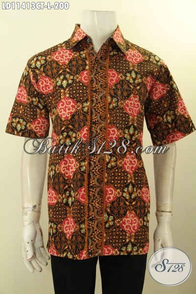 Baju Batik Atasan Untuk Pria, Kemeja Lengan Pendek Batik Solo Asli Proses Cap Tulis Kwalitas Bagus Bahan Adem Nyaman Di Pakai Hanya 200K [LD11413CT-L]