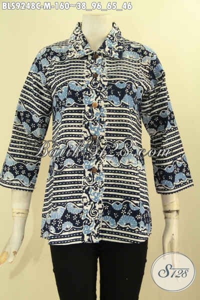 Baju Batik Atasan Untuk Wanita Kerja, Blouse Batik Kerah Lancip Kancing Depan Lengan 7/8 Motif Tren Masa Kini, Tampil Cantik Dan Berkelas [BLS9248C-M]