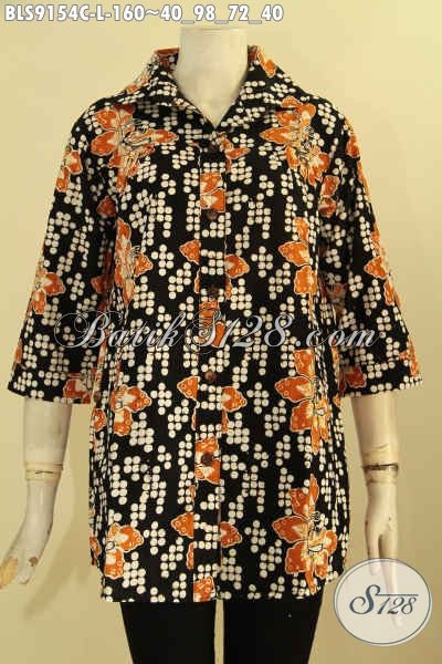 Baju Batik Atasan Untuk Wanita Kerja, Blouse Batik Solo Asli Desain Berkerah Motif Bagus Jenis Cap Bahan Halus Yang Nyaman Di Pakai [BLS9154C-L]