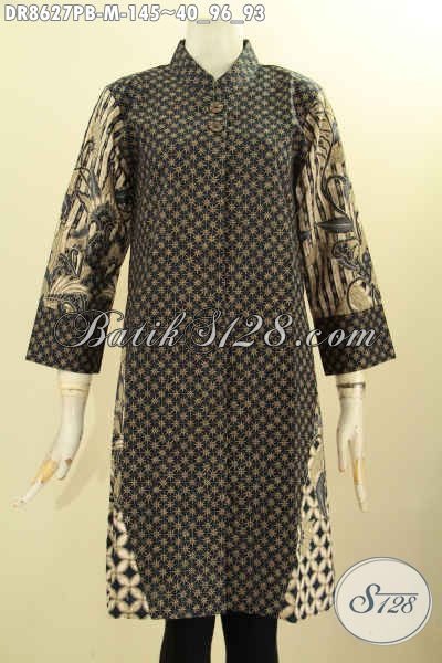 Baju Batik Atasan Wanita Kantoran, Busana Batik Modern Motif Elegan Klasik Bahan Adem Proses Printing Cabut Dengan Lengan 7/8 Ekrah Kerah Shanghai Dilengkapi Kancing Depan [DR8627PB-M]