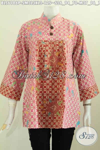 Baju Batik Bagus Banget, Blus Batik Keren Dan Berkelas Desain Kerah Shanghai Berbahan Halus Proses Printing Untuk Penampilan Makin Gaya [BLS6186P-L]