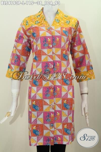 Baju Batik Berkelas Model Dua Dengan Kerah V Terlihat Modis Dan Keren, Baju Batik Printing Ukuran L Bisa Untuk Wanita Muda Dan Dewasa, Cocok Untuk Pakaia Kerja [BLS4193P-L]