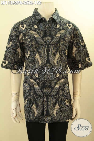 Baju Batik Big Size Spesial Untuk Pria Gemuk Sekali, Busana Batik Solo Asli Motif Bagus Proses Printing Cabut Model Lengan Pendek, Tampil Gagah Dan Terlilhat Langsing [LD11552PB-XXXL]