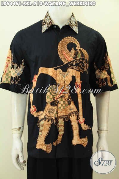 Baju Batik Big Size Warna Hitam Elegan, Busana Batik Lengan Pendek Pria Gemuk Motif Wayang Werkudara Harga 200 Ribuan Saja [LD9449T-XXL]