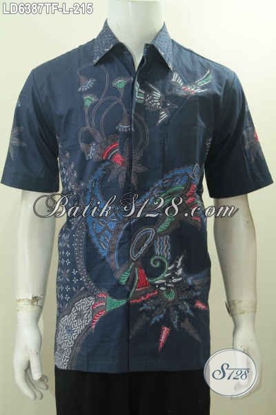 Baju Batik Biru Donker Lengan Pendek, Hem Batik Istimewa Buatan Solo Proses Tulis Daleman Full Furing Bikin Cowok Terlihat Gagah Dan Keren [LD6387TF-L]