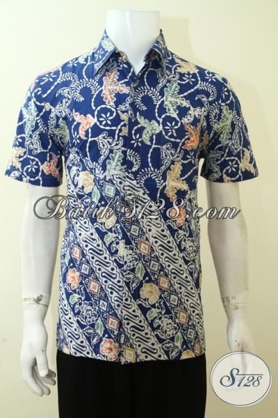 Baju Batik Biru Motif Kombinasi Klasik Dan Modern, Busana Batik Lengan Pendek Halus Nyaman Di Pakai [LD3558C-M]