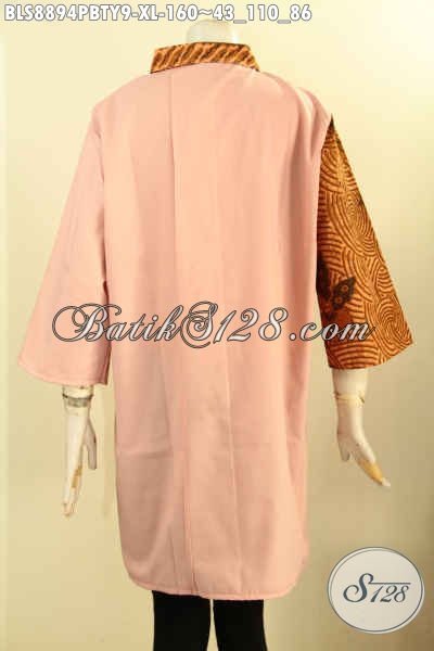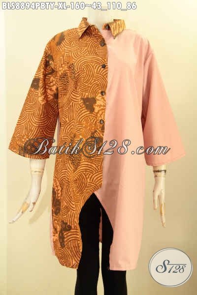 Baju Batik Blouse Wanita Karir, Busana Batik Kerja Nan Istimewa Dengan Kombinasi Kain Polos Toyobo, Baju Batik Modis Kerah Lancip Lengan 3/4, Tampil Cantik Mempesona [BLS8894PBTY-XL]