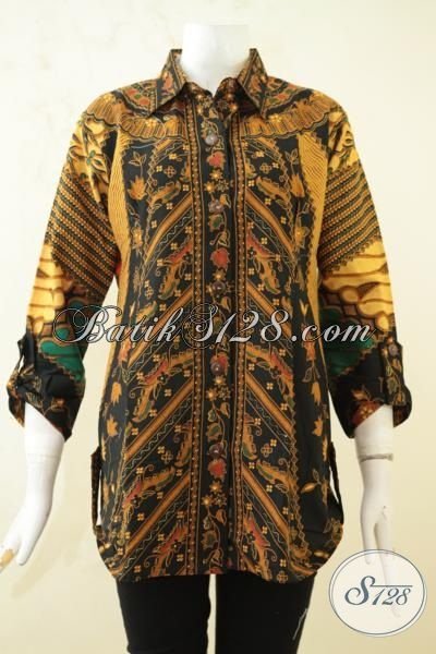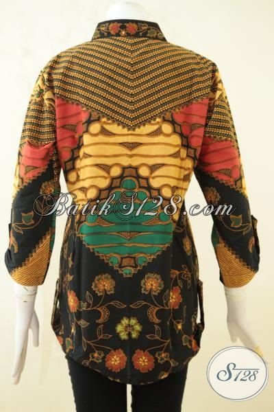 Baju Batik Blus Desain Modis Membuat Cewek Semakin Stylist, Batik Baju Kerja Proses Printing Pas Buat Acara Formal [BLS3346P-L]