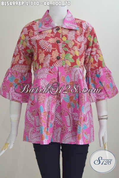 Baju Batik Blus Kerah Lancip Warna Cerah Bikin Penampilan Terlihat Fresh, Pakaian Batik Printing Dari Solo Bahan Halus Yang Nyaman Di Pakai Tiap Hari [BLS4998P-L]