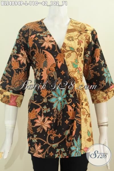 Baju Batik Blus Kimono Warna Elegan Dengan Kombinasi Dua Warna Klasik, Pakaian Batik Kerja Proses Printing Kwalitas Halus Pas Buat Ke Kantor [BLS4894P-L]