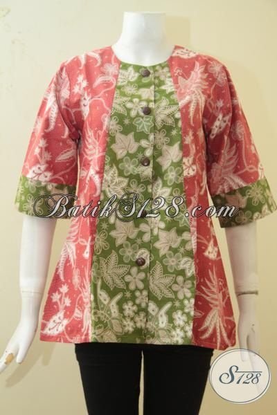 Baju Batik Blus Koleksi Terbaru Batik S128, Busana Batik Istimewa Kombinasi Tulis Dua Motif Berpadu Warna Hijau Serta Merah Jambu Model Keren Sekali [BLS3363BT-S]