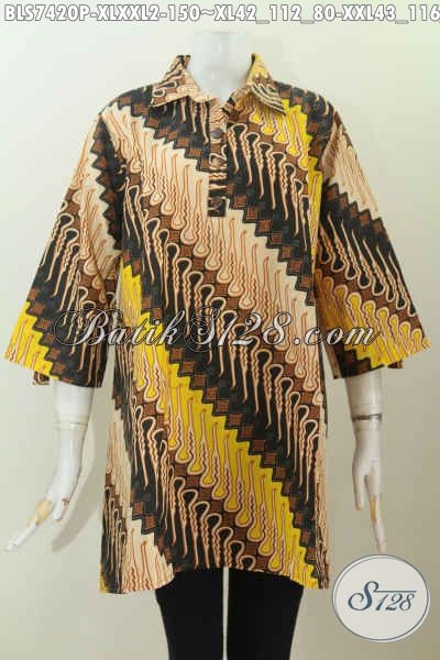 Baju Batik Blus Solo Motif Parang Kwalitas Istimewa Hanya 150K, Busana Batik Kerah Lancip Kancing Depan Proses Printing, Pas Banget Untuk Seragam Kerja [BLS7420P-XXL]