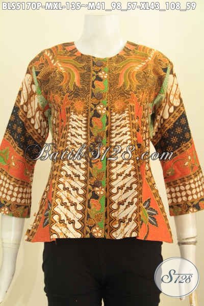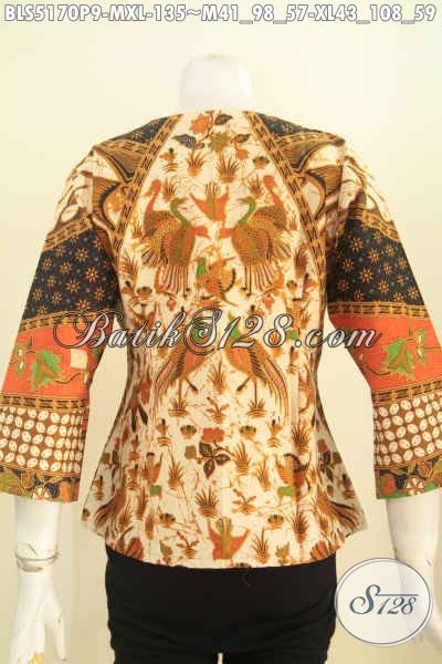 Baju Batik Blus Tanpa Krah Motif Klasik Proses Printing, Pakaian Batik Modern Untuk Seragam Kerja Tampil Lebih Gaya [BLS5170P-M , X]
