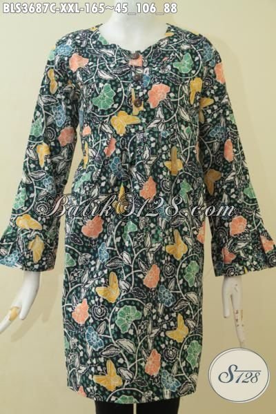 Baju Batik Cap Motif Kupu-Kupu Dengan Kwalitas Bahan Yang Halus Dan Adem, Pakaian Batik Masa Kini Yang Mampu Bikin Cewek Gemuk Tampil Cantik Maksimal [BLS3687C-XXL]