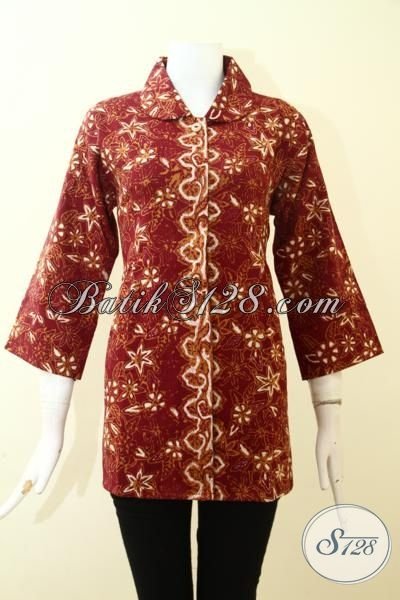 Baju Batik Cap tulis Untuk Cewek Kantoran Berbahan Dolbi Dan Dilengkapi Daleman Full Furing, Busana Blus Batik Mewah Perempuan Lebih Bergaya [BLS2592DCTF-L]