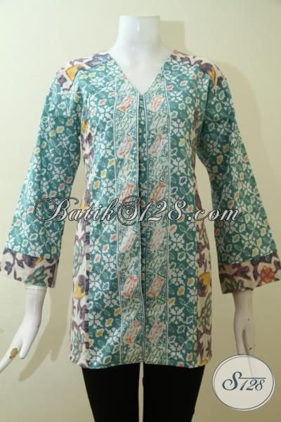Baju Batik Cap Warna Hijau Desain Mewah, Pakaian Batik Wanita Dewasa Untuk Tampil Anggun di Kantor [BLS2643C-L]