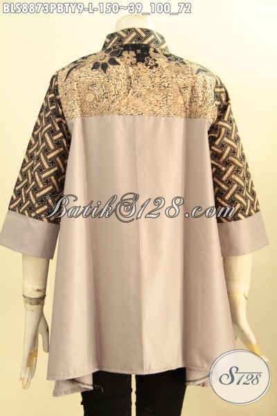 Baju Batik Cewek Modis, Blouse Batik Solo Asli Desain Kerah Shanghai Motif Elegan Kombinasi Katun Polos Toyobo, Menunjang Penampilan Lebih Anggun Dan Cantik [BLS8873PBTY-L]