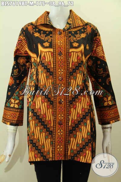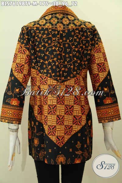 Baju Batik Cewek Modis Motif Elegan Berkelas, Pakaian Batik Model Kerah Proses Kombinasi Tulis, Pas Banget Untuk Seragam Kerja [BLS7619BT-M]