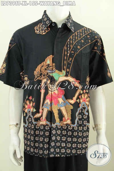 Baju Batik Cowok Dewasa Ukuran XL, Hem Batik Tulis Modis Halus Motif Wayang Bima Bahan Adem Yang Nyaman Di Pakai Model Lengan Pendek Hanya 155K [LD7398T-XL]