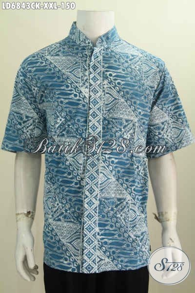 Baju batik Cowok Gemuk Model Kerah Shanghai, Kemeja Batik Modern Masa Kini Bahan Halus Proses Cap Motif Elegan, Tampil Lebih Berwibawa [LD6843CK-XXL]