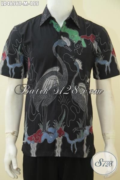 Baju Batik Cowok Ukuran M, Kemeja Batik Tulis Lengan Pendek Dasar Hitam Motif Bagus, Cowok Makin Terlihat Modis [LD4656T-M]