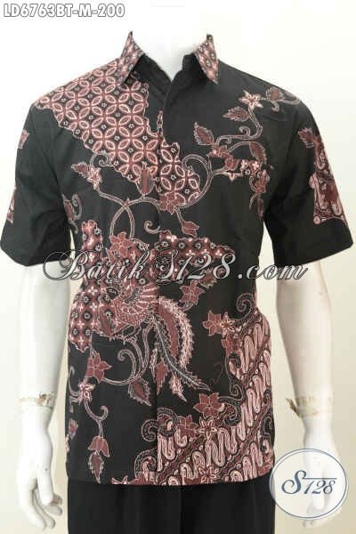Baju Batik Dasar Hitam Motif Bagus, Hem Batik Solo Nan Istimewa Proses Kombinasi Tulis Model Lengan Pendek Untuk Cowok Terlihat Gagah Dan Trendy [LD6763BT-M]