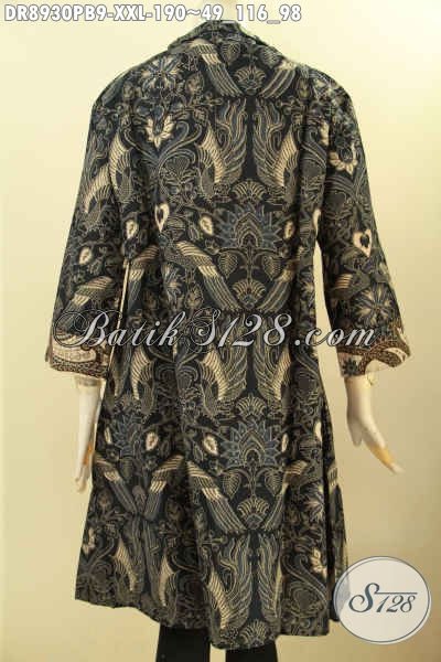 Baju Batik Dress Big Size Nan Elegan Desain Mewah Penampilan Cantik Menawan, Busana Batik Wanita Gemuk Model Terbaru Asli Buatan Solo, Di Jual Online Dengan Harga Terjangkau [DR8930PB-XXL]