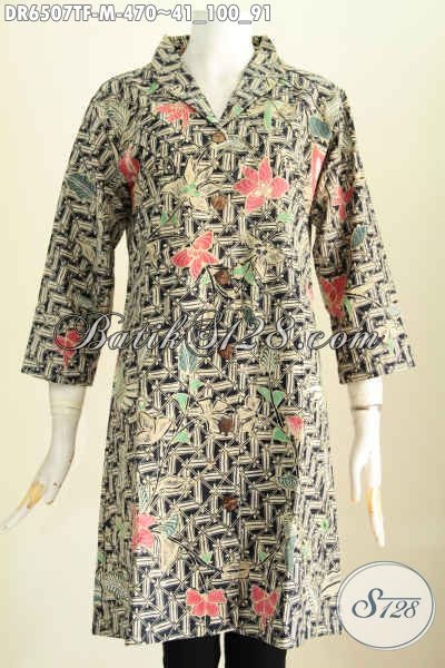 Baju Batik Dress Halus Motif Trendy Warna Bagus Proses Tulis, Busana Batik Kerah Langsung Untuk Penampilan Lebih Sempurna [DR6507TF-M]