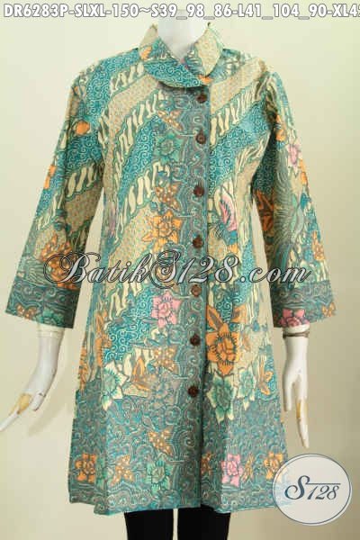 Baju Batik Dress Masa Kini Motif Bunga-Bunga, Pakaian Batik Solo Istimewa UntukWanita Muda Dan Dewasa Tampil Cantik Mempesona [DR6283P-S , L , XL]