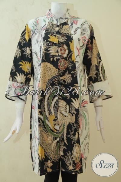 Baju Batik Dress Paling Di Cari Wanita Saat Ini, Busana Kerja Batik Desain Oriental Berbahan Batik solo Kombinasi Tulis Halus Dan Adem Nyaman Di Pakai [DR3260BT-L]