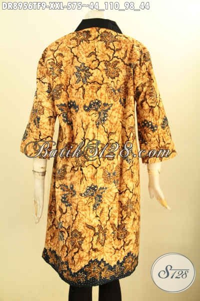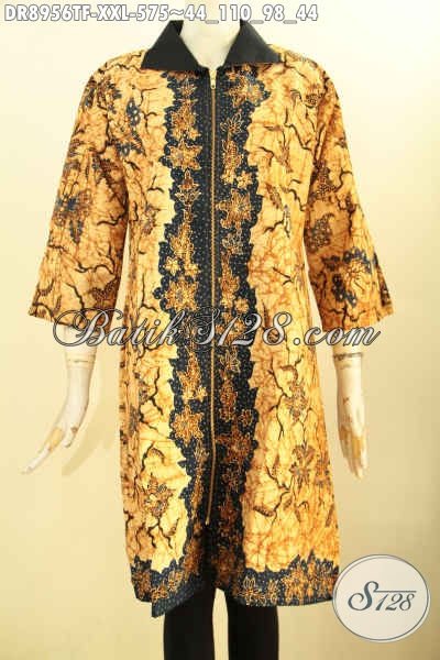 Baju Batik Dress Premium Nan Istimewa Lengan 3/4 Dengan Resleting Depan Pakai Kerah Daleman Full Tricot, Pas Banget Untuk Kerja Kantoran Tampil Lebih Menawan [DR8956TF-XXL]