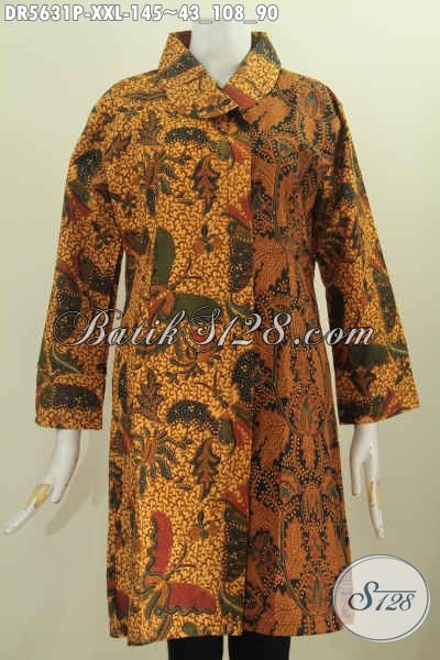 Baju Batik Dress Spesial Untuk Wanita Gemuk, Produk Pakaian Batik istimewa Proses Printing Model Terbaru Kerah Miring Bikin Penampilan Terlihat Anggun [DR5631P-XXL]