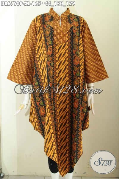 Baju Batik Dress Wanita Dewasa, Busana Batik Elegan Model A Simetris Bahan Adem Motif Lawasan Sog Proses Printing Tampil Makin Berkelas [DR6750P-XL]