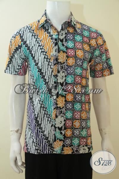 Baju Batik Dual Motif Kotak Dan Parang, Busan Batik Lengan Pendek Untuk Pria Muda Tampil Lebih Gagah [LD3644C-S]