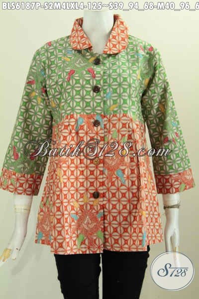 Baju Batik Dual Warna, Blus Batik Kerah Bulat Trrend Mode Pakai Wanita Karir Masa Kini, Di Jual Online 125K [BLS6187P-S , M , L , XL]