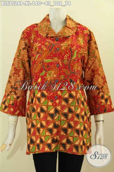 Baju Batik Elegan, Busana Batik Jawa Etnik Berkelas Proses Printing, Blus Batik Ofin Istimewa Dengan Ofneisel Krah Dan Lengan Hanya 140 Ribu [BLS7526P-XL]