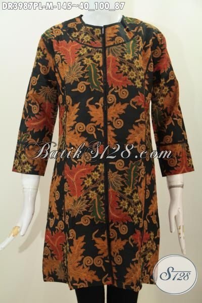 Baju Batik Elegan Desain Sempurna Tampil Makin Berkelas, Dress Batik Jawa Motif Mewah Berbahan Halus Proses Printing Tampil Makin Gaya [DR3987PL-M]