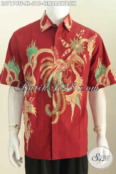 Baju Batik Elegan Keren Dan Mewah, Hem Batik Lengan Pendek Motif Burung Cendrawasih Bahan Adem Proses Tulis, Tampil Berkelas Dengan 215K [LD7174TF-XL]