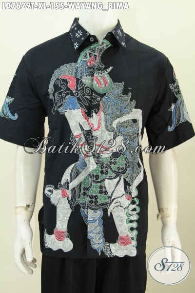 Baju Batik Elegan Lengan Pendek, Hem Batik Modis Halus Proses Tulis Motif Wayang Bima, Cowok Terlihat Gagah Dan Tampan [LD7629T-XL]