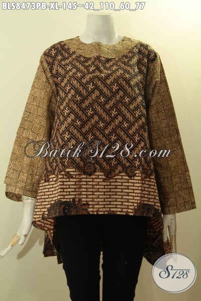 Baju Batik Elegan Motif Bagus Dan Berkelas Proses Printing Cabut, Pakaian Batik Lengan Tumpuk Kancing Belakang Desain Depan Lebih Pendek Dari Belakang Hanya 145 Ribu [BLS8473PB-XL]