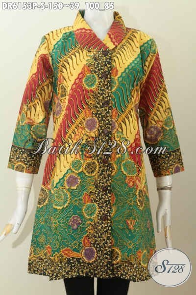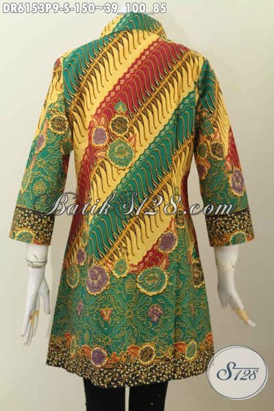 Baju Batik Elegan Motif Mewah, Produk Busana Batik Solo Istimewa Model Kerah Miring Proses Printing Harga 150K [DR6153P-S]