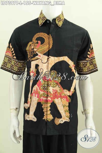 Baju Batik Elegan Motif Wayang Bima, Busana Batik Keren Proses Tulis Lengan Pendek Yang Bikin Cowok Makin Gagah Dan Tampan Maksimal [LD7397T-L]