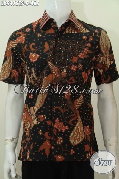 Baju Batik Elegan Nan Mewah Model Lengan Pendek, Baju Kerja Batik Berkelas Motif Bagus Proses Tulis Soga Untuk Penampilan Makin Gagah [LD5472TS-S]