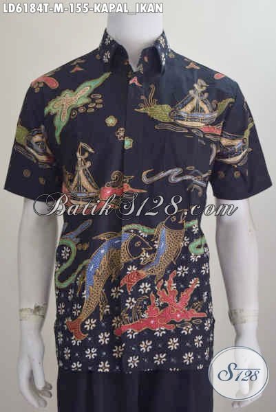 Baju Batik Elegan Untuk Pria, Busana Batik Modis Lengan Pendek Motif Kapal Dan Ikan Bahan Adem Proses Tulis Untuk Penampilan Lebih Keren Dan Modis [LD6184T-M]