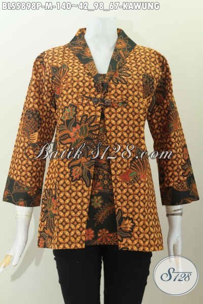 Baju Batik Forma Untuk Wanita, Hadir Dengan Model Jas Berpadu 2 Motif Klasik Berkelas Untuk Penampilan Terlihat Premium [BLS5898P-M]