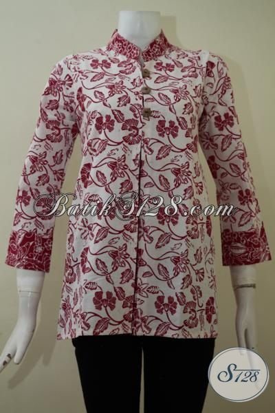Baju Batik Formal Seragam Kerja Wanita Karir Modern, Baju Blus Batik Lengan Tujuh Perdelapan Dengan Desain Mewah Sempurnakan Penampilan Wanita Masa Kini [BLS2246C-M]