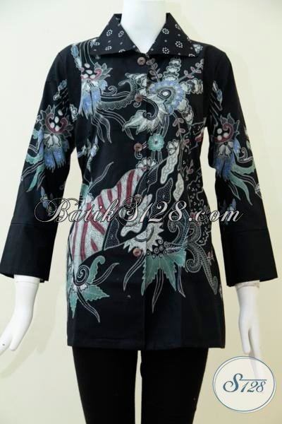 Baju Batik Formal Warna Hitam Elegan Untuk Wanita, Baju Blus Batik Motif Modern Cocok Sekali Untuk Seragam Kerja [BLS1556T-M]