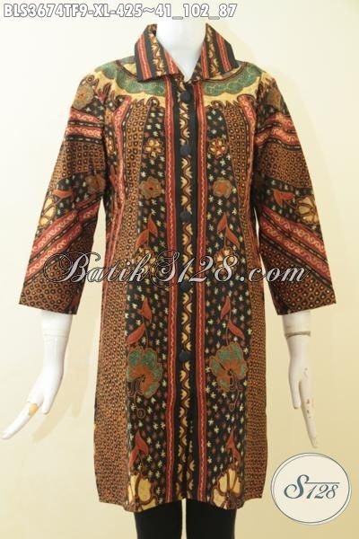Baju Batik Full Furing Proses Tulis Tangan, Pakaian Batik Blus Full Furing Motif Klasik Baju Kerja Mewah Tampil Luar Biasa [BLS3674TF-XL]